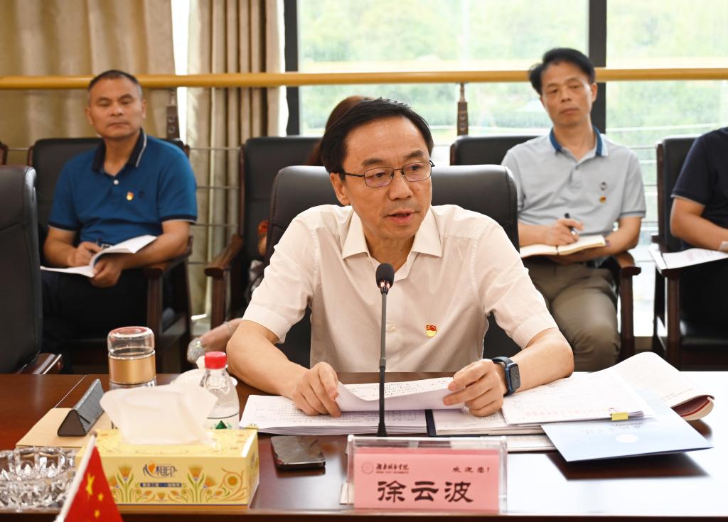 听取调研成果交流后,徐云波对我校领导班子调研工作的扎实开展和显著成效给予高度肯定,认为我校主题教育专题调研“选题准、调研深、整改实”,同时也指出了不足之处:未能很好地结合到党和国家发展的远景目标和学校中长期发展规划;在提升师生员工获得感、幸福感和安全感方面亮点不足。徐云波指出,调查研究是做好各项工作的基本功,是谋事之基、成事之道。要用好调查研究这个党的“传家宝”,以高质量调查研究推动高质量发展。他就学校发展提出五点建议:要把立德树人作为根本任务;要把服务国家战略和“三高四新”美好蓝图作为最高任务;要把学科建设作为发展根基;要把深化改革作为强大动力;要把党的建设作为坚强保障。徐云波强调,要高质高效做好下一步工作,推动主题教育走深走实。一是理论学习要坚持好;二是走找想促要落实好;三是检视整改要推进好;四是推动发展要谋划好;五是典型经验要提炼好;六是长效机制要建立好。同时,要强化宣传力度,严防“低级红”“高级黑”现象,确保主题教育的整体质量和效果,推动学校高质量发展取得新成效。