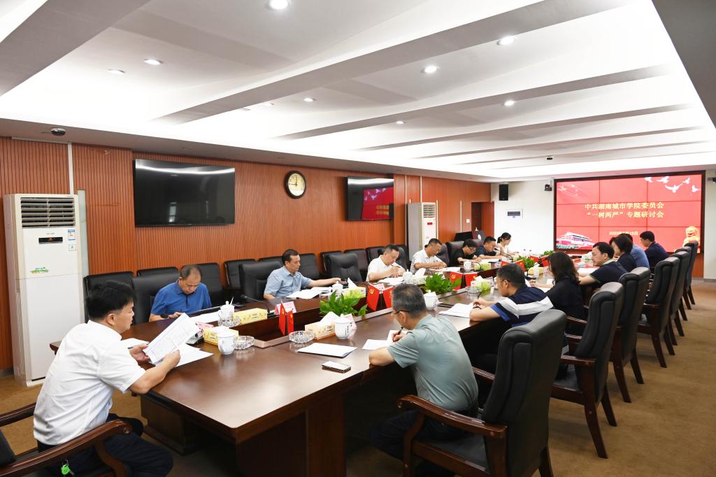 本网讯(通讯员 周文娟)8月15日,学校党委在办公楼一会议室开展“一树两严”专题学习研讨会。党委书记汤放华主持会议。省委第三十巡回指导组成员詹玮出席会议。