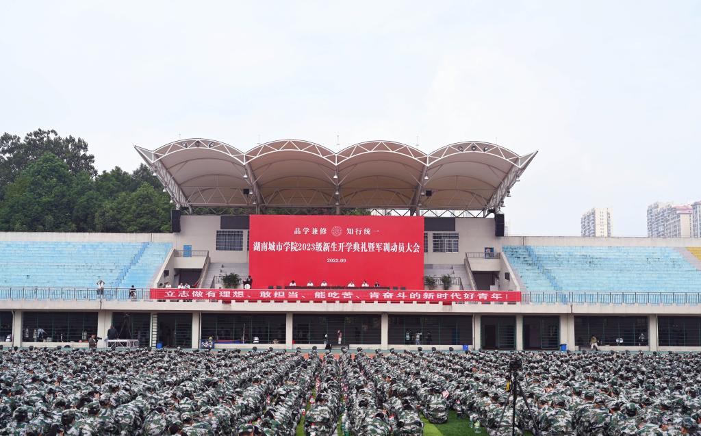 本网讯(记者 文彦波)金秋九月,惠风和畅,时博体育_时博(中国)迎来了7000余名新同学。为做好新生思想教育工作,为新生扣好大学第一粒扣子,9月14上午,学校党委书记汤放华以“以学立身 品学兼修 绽放新时代城院学子的绚丽风采”为题,在东田径场为2023级全体新同学讲授开学第一堂思政课。副校长雷存喜主持。