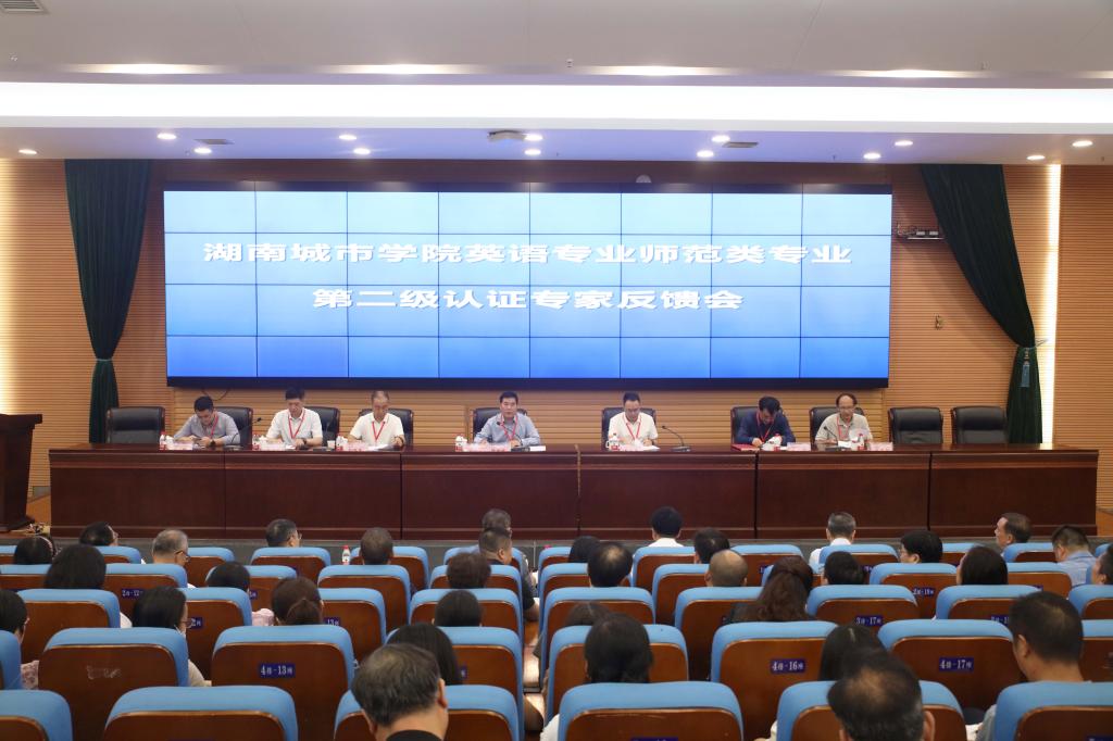 本网讯(记者 文彦波)9月20日上午,我校英语专业第二级师范类认证专家反馈会在图书馆报告厅召开。认证专家组全体成员,校党委书记汤放华、校长何振等校领导出席会议。会议由专家组组长陈国维教授主持。