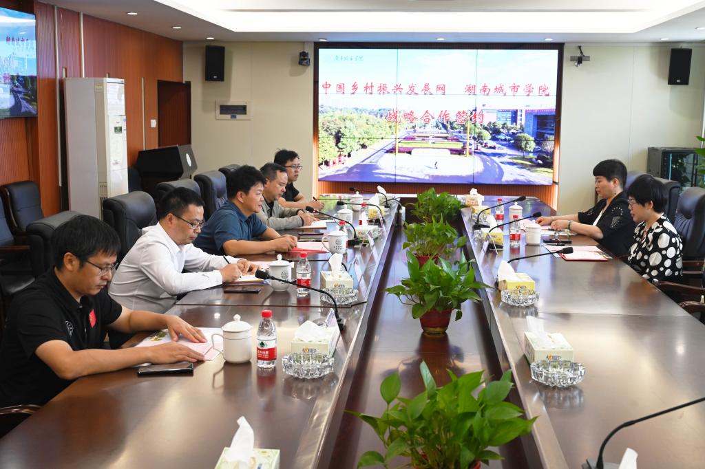 汤放华代表学校对王冰一行的到来表示热烈欢迎,表示时博体育_时博(中国)将充分发挥在学科专业、科学研究、人才队伍和社会服务等方面的突出优势,联合中国乡村振兴发展网开展乡村振兴领域的深度合作,为乡村产业、人才、文化、生态、组织五大振兴及和美乡村建设赋能。