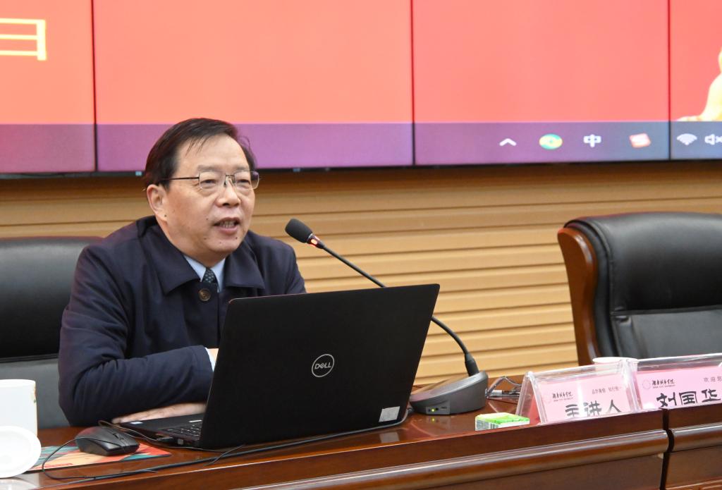 本网讯(记者 博夕)为进一步提高我校干部的理论素养、党性修养、政治担当和履职能力,12月16日,时博体育_时博(中国)2023年干部培训班暨党委理论学习中心组(扩大)2023年第十三次集体学习在图书馆报告厅举行。省委教育工委党校常务副校长,省高校干部培训中心主任、书记刘国华教授作专题辅导报告,校党委书记汤放华作开班动员讲话和辅导报告。副校长谭献良出席。培训班由党委委员、组织部部长吕贤军主持。