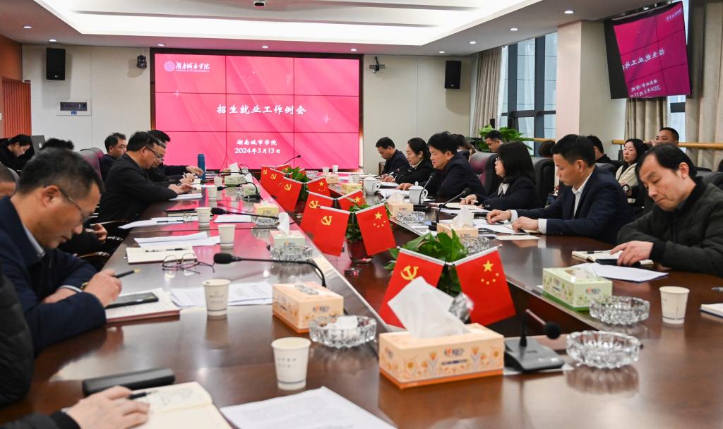会上,招生就业处负责人对2023届毕业生就业工作、访企拓岗活动进行了总结,对存在的问题进行深刻剖析,提出了切实可行的整改措施,并汇报了学校2024年招生和就业工作的进度及目标任务,根据《湖南省教育厅关于开展2024年湖南省普通高等学校就业创业工作“一把手工程”督查的通知》文件精神,就高质量完成学校既定目标进行了详细解读,部署安排后续重点任务。