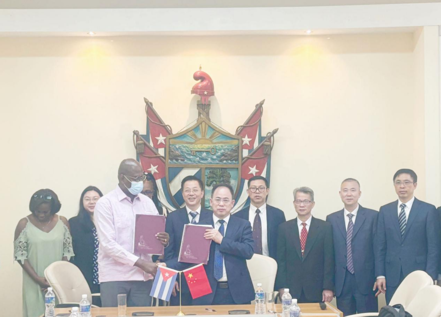 结束墨西哥的访问后,代表团来到古巴。在哈瓦那大学,副校长迪奥尼西欧教授向代表团介绍了学校的基本情况,期待与湖南高校在师生交流、科学研究等方面开展合作。夏智伦指出,近年来,湖南与古巴不断深化交流交往,在多领域合作密切。他表示,希望通过本次访问,加强湘古高校之间的了解和沟通,推动双方的合作迈上新台阶。随后,何振代表我校与哈瓦那大学签署了合作谅解备忘录,两校将在学生交流、人员培训、共建国际联合实验室等方面开展合作。