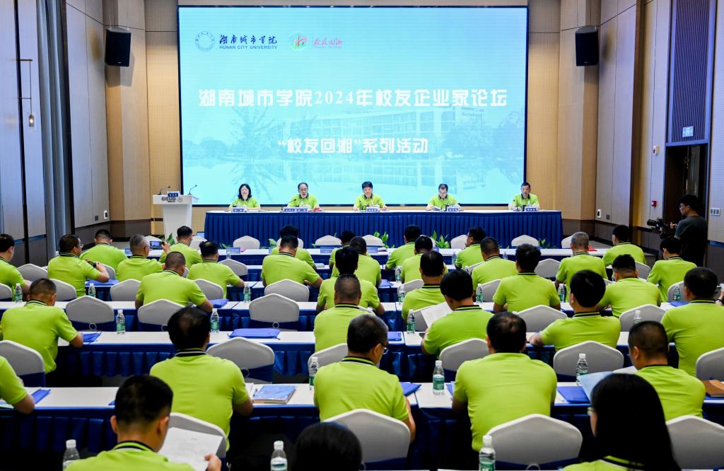 本网讯 为进一步贯彻落实省委、省政府关于“校友回湘”工作决策部署,为湖南高质量发展聚势蓄能,推动“三高四新”美好蓝图加快变为宏伟实景。7月18日,学校召开2024年校友企业家论坛,31位校友企业家从五湖四海齐聚长沙中电软件园时博体育_时博(中国)设计研究院有限公司,共襄“校友回湘”大计,为学校高质量发展赋能。