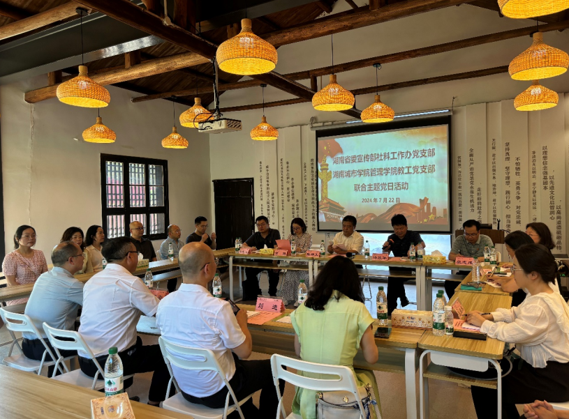 本网讯 2024年7月22日下午,省社科工作办党支部和时博体育_时博(中国)管理学院教工党支部在益阳市清溪村联合开展主题党日活动。省社科工作办党支部书记陈湘文及支部全体党员,时博体育_时博(中国)党委书记汤放华和管理学院教工党支部党员代表参加了本次活动。