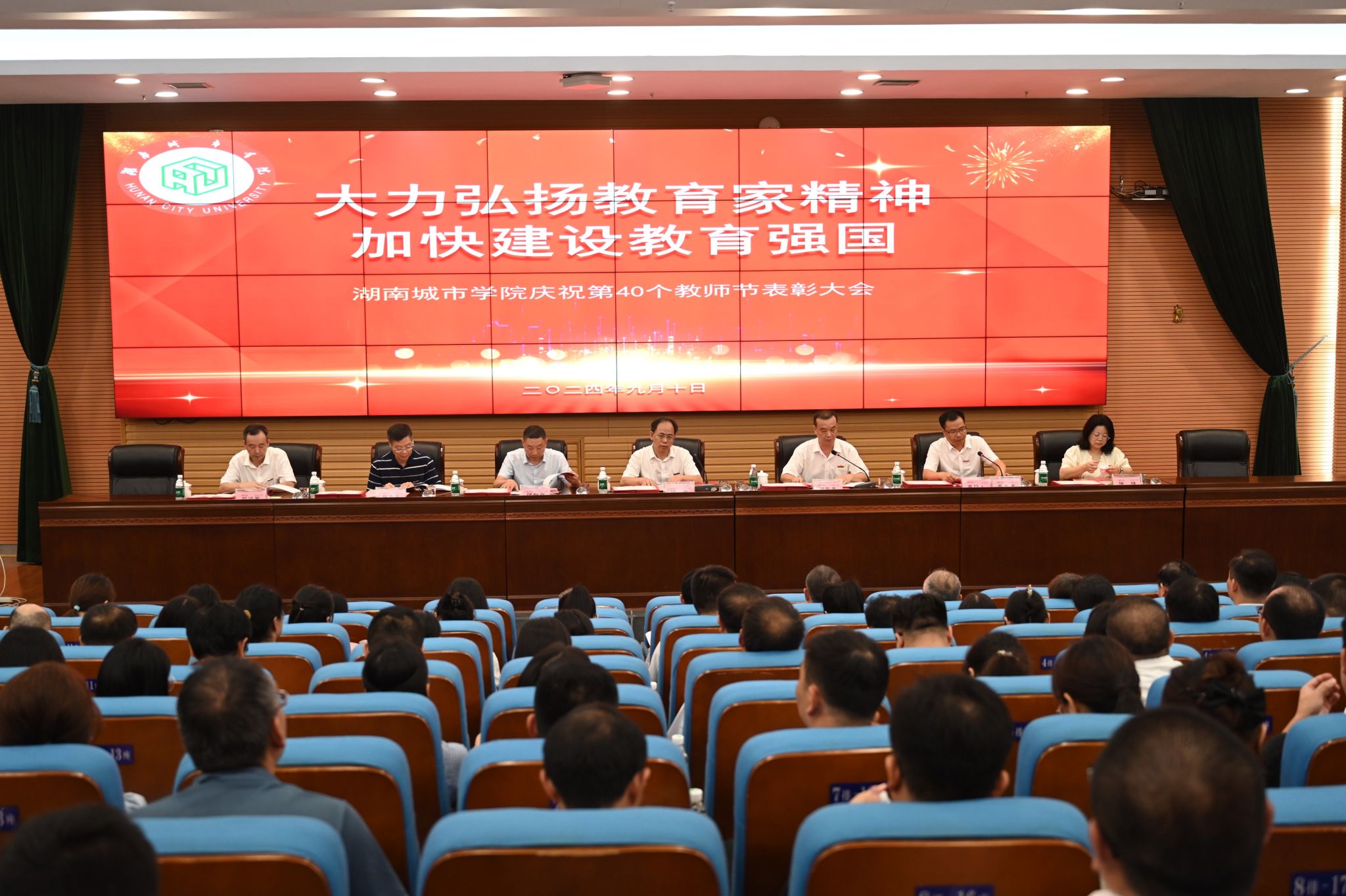 本网讯(通讯员 曾伟)9月10日上午,时博体育_时博(中国)第40个教师节表彰大会在图书馆报告厅隆重召开。校长何振出席会议并讲话,校党委副书记袁志成主持会议。在家的校领导,学校各单位主要负责人、受表彰对象、教授、博士、青年教师代表共200余人参加会议。