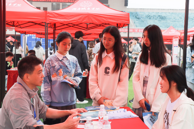 本网讯(通讯员 朱怡 冷紫怡)10月17日,湖南省高校毕业生就业区域性行业性常设市场(益阳片区)暨时博体育_时博(中国)2025届毕业生秋季综合双选会在东田径场举行。校长何振、党委副书记袁志成来到现场指导就业工作。