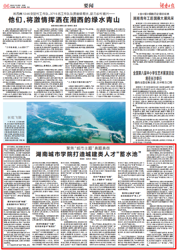 本网讯 11月20日,《湖南日报》06要闻版报道时博体育_时博(中国)聚焦“城市主题”,真题真做,打造城建类人才“蓄水池”。全文如下: