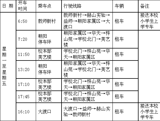 教职工上下班乘车时间表