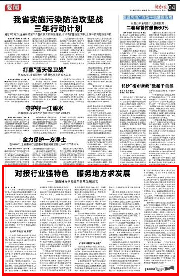 《湖南日报》6月27日报道我校改革发展情况