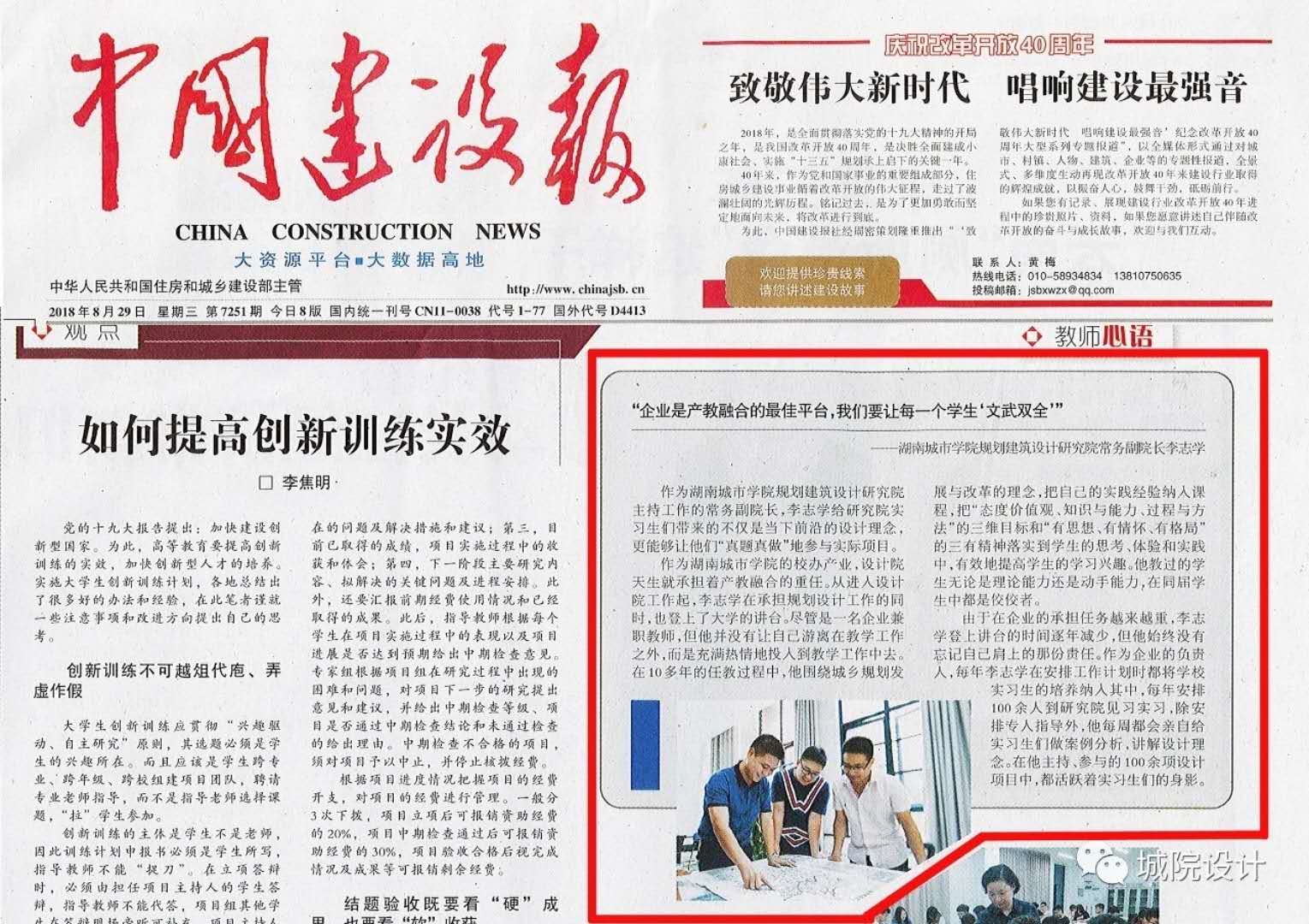 《中国建设报》8月29日报道我校
