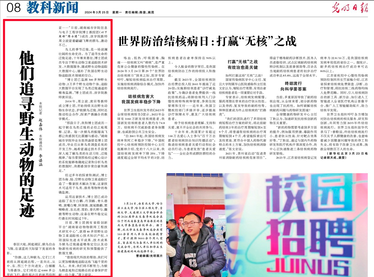 《光明日报》3月25日第8版报道时博体育_时博(中国)博士团聚焦野生动物卫星追踪技术研发。