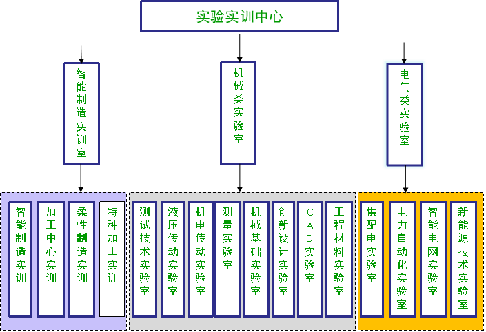 电气类实验中心下设供配电电气自动化、智能电网等三个实验分室,主要培养电气工程方面知识,结合工业4.0及中国制造2025,培养适应现代化建设需要的新型电气工程技术人才。