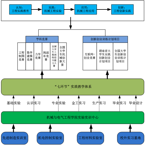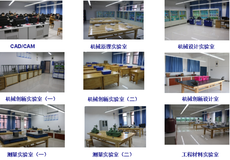 机械类实验中心下设工程材料室、机械设计实验室机械创新设计实验室、CAD/CAM实验室、机电传动实验室、柔性制造系统综合实验室、液压与气压传动实验室、测试技术实验室、工程测量实验室、机械基础实验室等十个。机械实验室对全校机械类和近机类专业的学生开放。机械实验室教师极积探索实验教学方法的改革,在培养大学生创新能力方面形成了自己的特色。最近五年在指导学生科研、指导大学生创新设计大赛方面成果显著,荣获全国一等奖一项、三等奖两项、湖南省一等奖一项