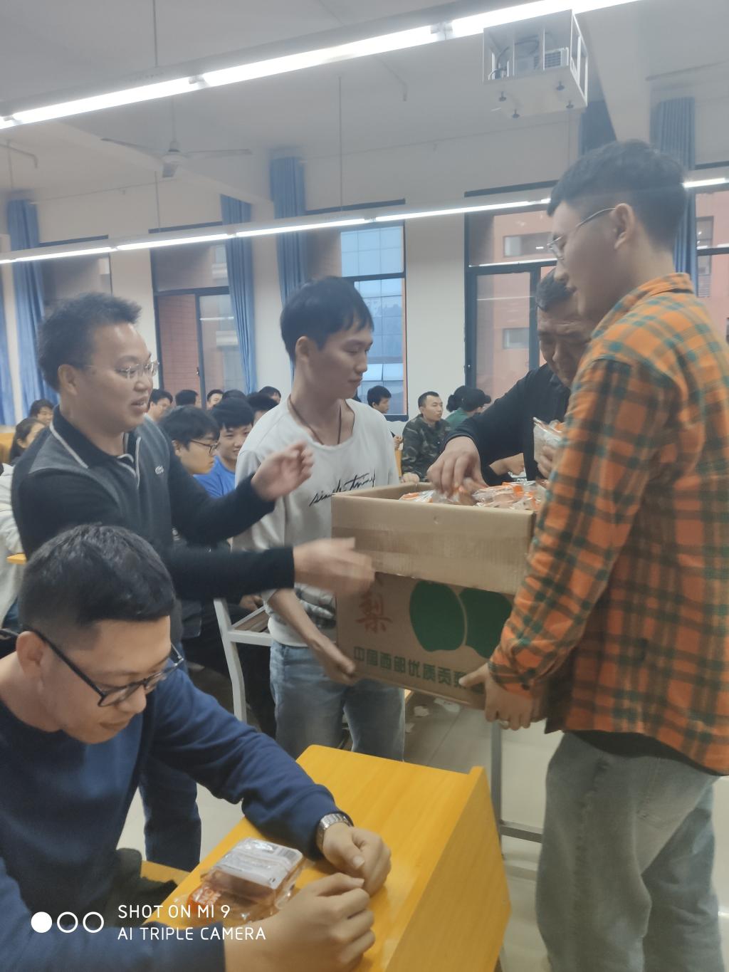 徐畅贤书记和刘辉副书记亲自将月饼分发给每位考研学生。领导们给考研学生送上深切的祝福:祝愿同学们中秋国庆双节快乐,并提前恭祝考研学子们取得佳绩、心想事成。同学们也纷纷表示一定会调整好状态,全力以赴参加考试,以优异的成绩回报学院领导和老师的关爱。