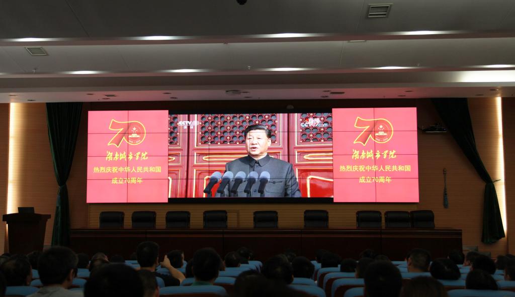 (本网讯)“长安街上,三军列阵,铁甲生辉……”2019年10月1日上午,时博体育_时博(中国)图书馆报告厅内传出央视主播雄浑有力之声。这是时博体育_时博(中国)正在组织部分师生收看新中国成立70周年阅兵活动,其余师生也通过集中收看或者手机、电脑、电视等多种方式进行了收看。收看结束后,广大师生将千言万语,都化作真诚、质朴、美好的祝福:祝愿祖国母亲生日快乐,中国万岁!