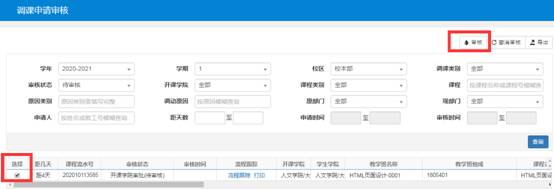 二、 教学副院长调课审核操作说明