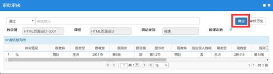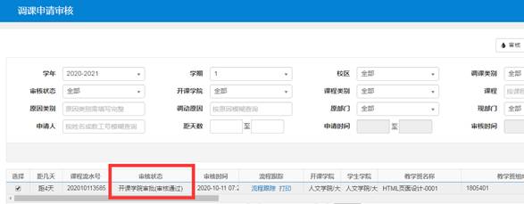 5、审核确定以后,调课审核页面将显示开课学院审批(审核通过),操作结束。