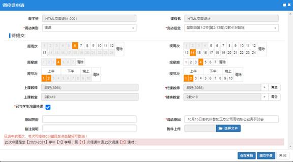 2. 确须因公出差、因病不能上课而申请调课者,应网上上传有关证明材料。