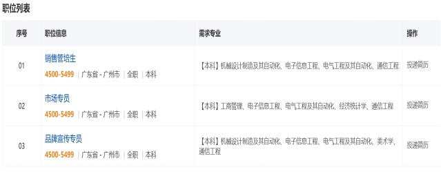 营销类岗位需求 备注:本司“营销类”相关岗位,需要掌握行业、产品专业知识,对电气系统熟悉,并通过自己的专业知 识与电网公司、发电公司、企事业单位客户沟通,提供相应的技术解决方案为客户解决问题,达成项目合 作。与普通常规的网络、电话、地推式推销产品完成不同。 一、大客户经理管培生 薪酬:7K-10K+提成 岗位职责: 1. 能够持续深入开拓与维护大客户关系,不断挖掘大客户需求,持续产生订单; 2. 通过一个大客户的挖掘,总结提炼行业营销策略,完成 1 到 N 的复制; 3. 能够深入调研市场、行业、友商信息,为公司营销决策提供依据; 4. 完成每年销售目标、客户拜访率目标以及其他销售及管理指标; 5. 完成上级领导安排的其他工作任务。 任职资格: 1. 要求持有驾照,学生会主要干部、情商高,酒量好、有良好的形象气质的优先; 2. 本科及以上学历,电气、电子、通信、营销、旅游等相关专业优先; 3. 沟通能力强、服务意识佳、抗压能力强。 二、解决方案营销管培生 薪酬:6K-7K+提成 岗位职责: 1. 能够深入挖掘客户需求,并为客户提供相应的解决方案; 2. 积极维护老客户关系,开发拓展潜力客户,发掘客户需求,开展有效的市场活动达成销售目标; 6. 能够深入调研市场、行业、友商信息,为公司营销决策提供依据; 3. 完成每年销售目标、客户拜访率目标以及其他销售及管理指标。 4. 完成上级领导安排的其他工作任务。 任职资格: 1. 学生会干部、班干部、活动积极分子,喜欢沟通情商高的优先; 2. 本科及以上学历,电气、电子、通信相关专业优先; 3. 沟通能力强、服务意识佳、抗压能力强、毕业前拿到驾照。 三、产品营销管培生 薪酬:5K+提成 岗位职责: 1. 积极维护老客户关系,开发拓展潜力客户,发掘客户产品需求,有效完成产品销售工作; 2. 能够深入调研市场信息,反馈客户产品需求及竞争对手动态; 3. 完成每年销售目标、客户拜访率目标以及其他销售及管理指标。 4. 完成上级领导安排的其他工作任务。 第 1 页 共 2 页第 2 页 共 2 页 任职资格: 1. 有销售法制,有开展过销售相关实习或实践工作者优先; 2. 本科及以上学历,专业不限; 3. 沟通能力强、服务意识佳、抗压能力强、毕业前拿到驾照。